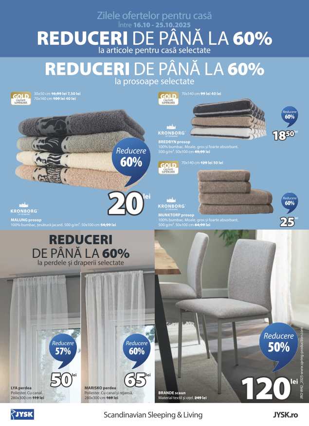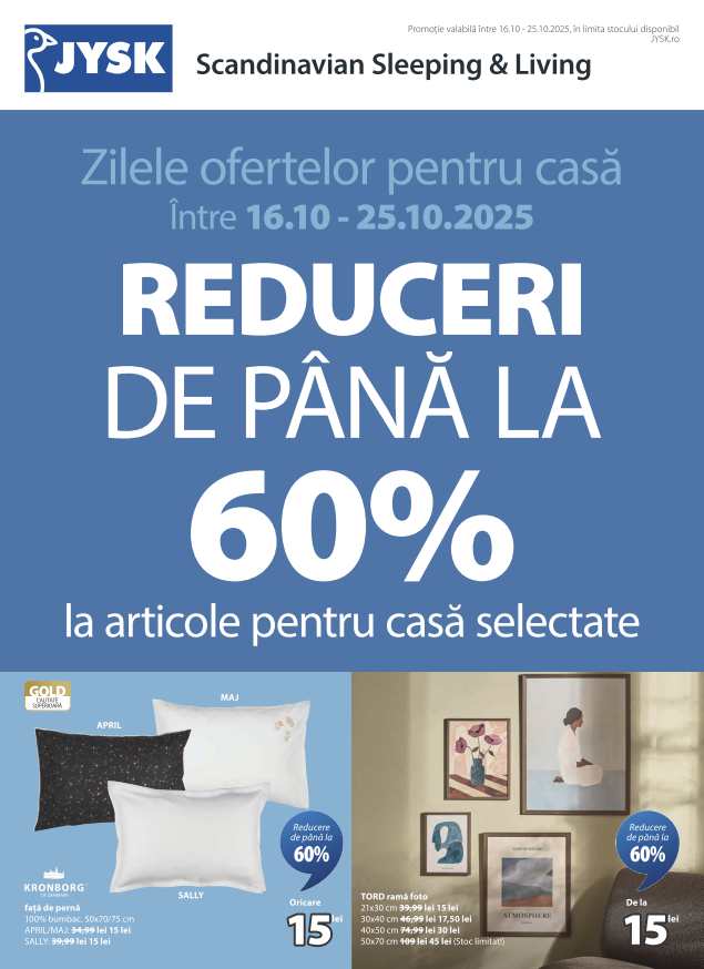 Perioada de valabilitate a ofertei: 16 Octombrie 2025 - 25 Octombrie 2025ATENTIE! Acest catalog nu mai este valabil. Pentru ofertele actuale iti recomandam sa verifici cataloagele din sectiunea Catalog JYSK.