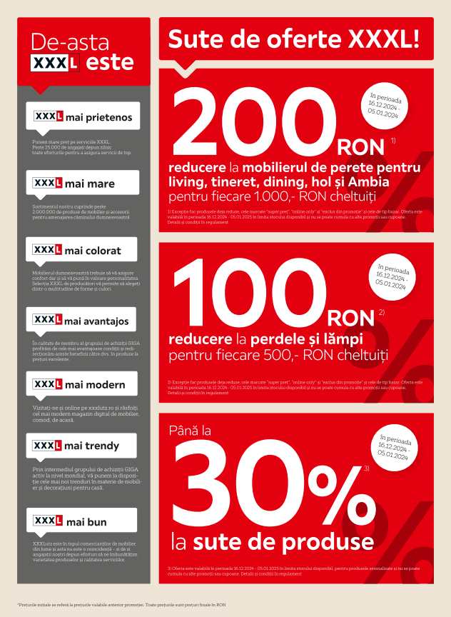 ATENTIE! Acest catalog nu mai este valabil. Pentru ofertele actuale iti recomandam sa verifici cataloagele din sectiunea Catalog XXXLutz.